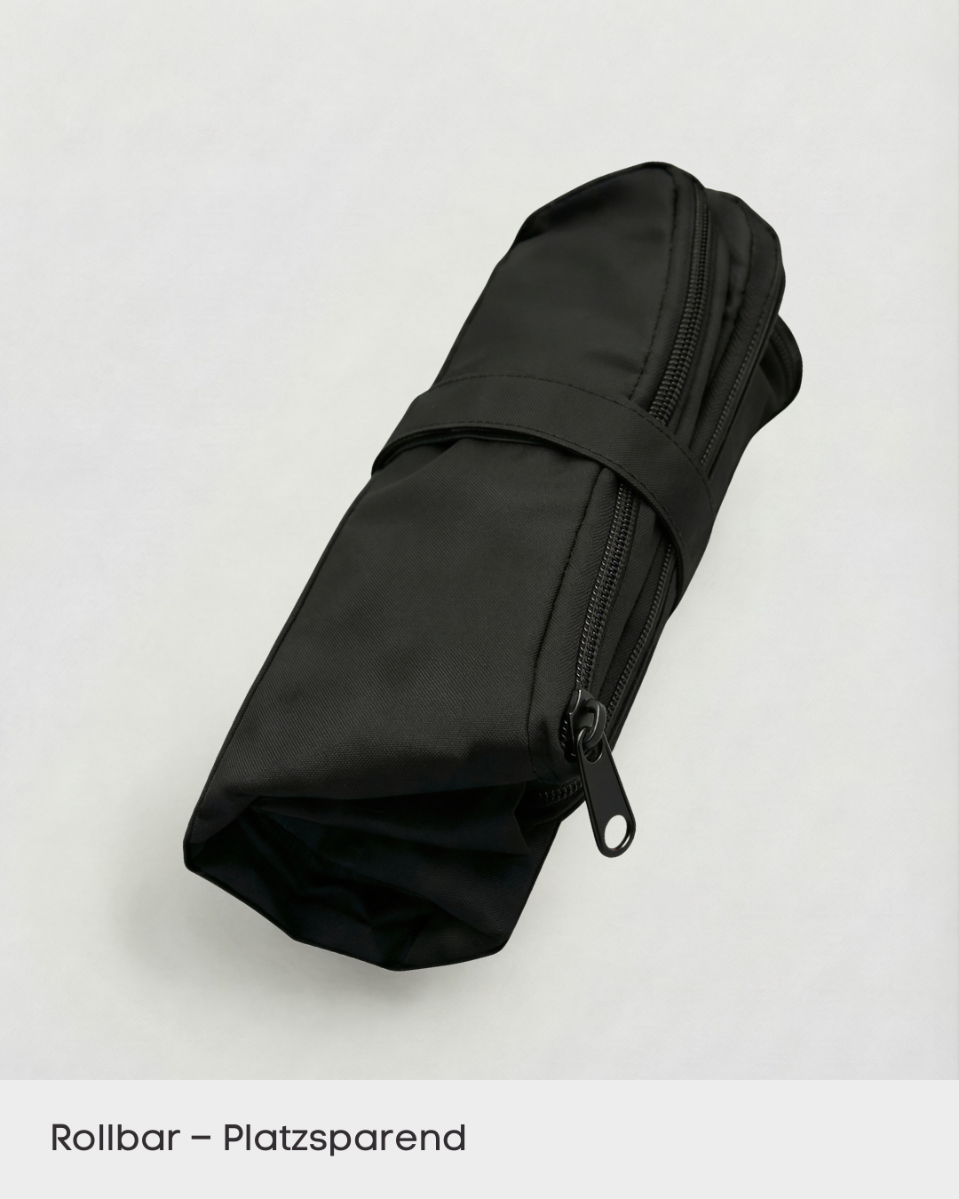 Kein Chaos in der Sporttasche Einrollen, bündeln, verstauen. Die Matte wird zur Tasche und hält alles zusammen. Ordentlich, sauber und sofort transportbereit.