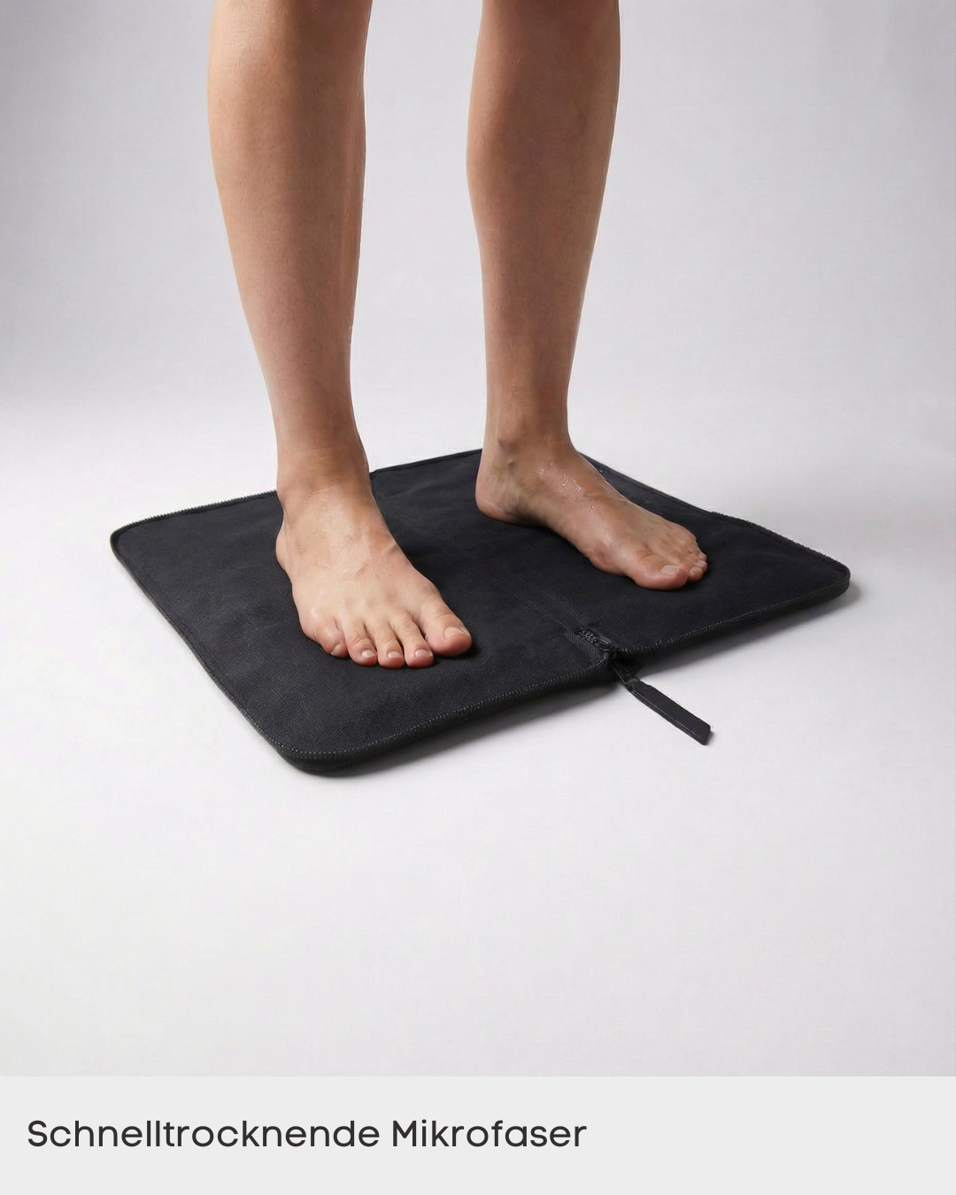 Beim Umziehen im Gym liegt dein Handtuch meist direkt auf den Fliesen. Wasser, Schmutz und Bakterien sammeln sich dort – und genau darauf stehst du.