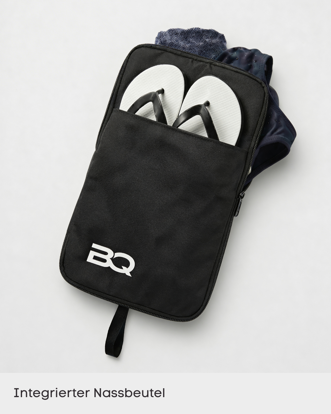 Nasse Kleidung nach dem Training oder Schwimmen? Kein Problem. Einrollen, verstauen, fertig. Die wasserdichte Außenseite hält Feuchtigkeit sicher im Inneren – so bleibt dein Rucksack trocken und alles sauber getrennt.